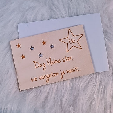 Houten wenskaart "Gelukkige verjaardag" met naam