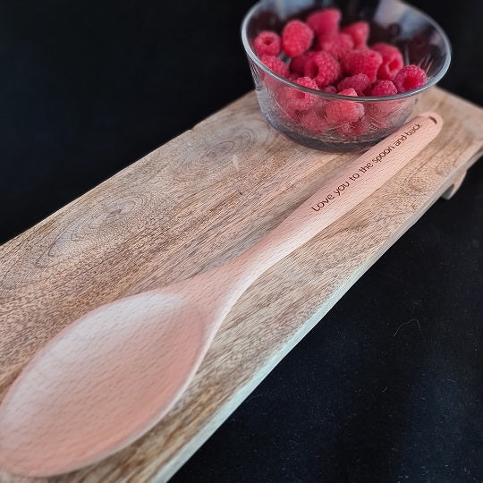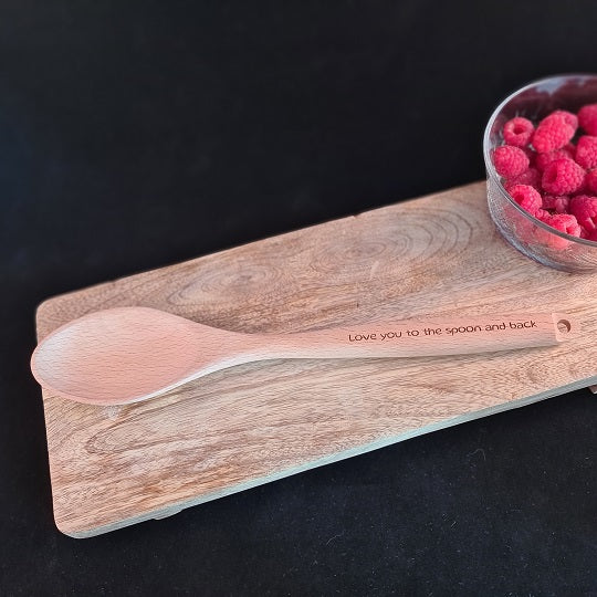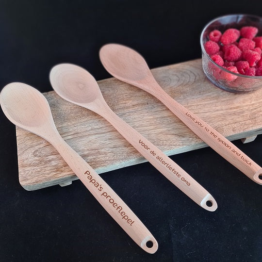 Houten lepel met zelfgekozen tekst. Origineel om af te geven als cadeau, voor eender welke gelegenheid, of om lekker voor jezelf te houden.