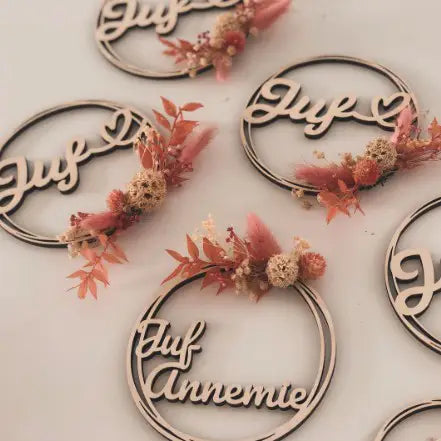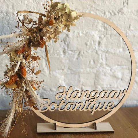 Onze gepersonaliseerde naamhoepels worden nóg mooier in combinatie met droogbloemen. Samen met Hangaar Botanique creëren we unieke flowerhoops die natuurlijke elegantie en persoonlijk ontwerp samenbrengen.