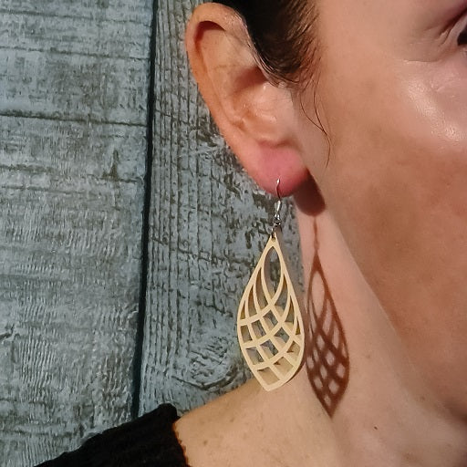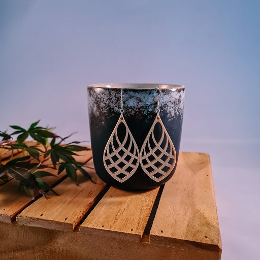Zachte beige druppels met een sierlijk gekruist patroon. Elegant, licht en natuurlijk — een tijdloze toevoeging aan elke look.