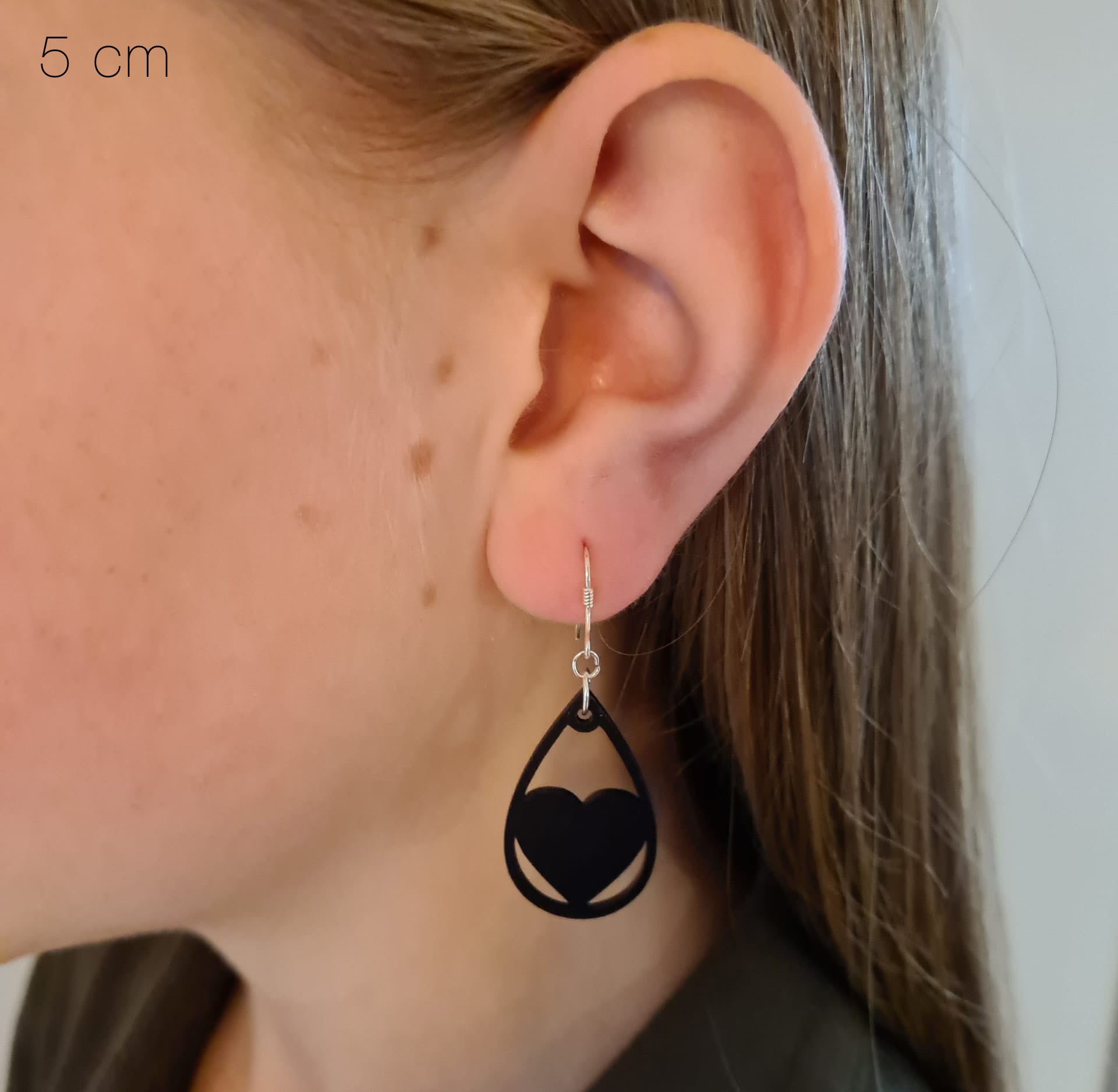 Deze zwarte oorbellen combineren de vloeiende vorm van een druppel met het tijdloze symbool van een hart. Het subtiele open design straalt zachtheid en charme uit, terwijl de diepe zwarte tint zorgt voor een stijlvolle, moderne toets.
