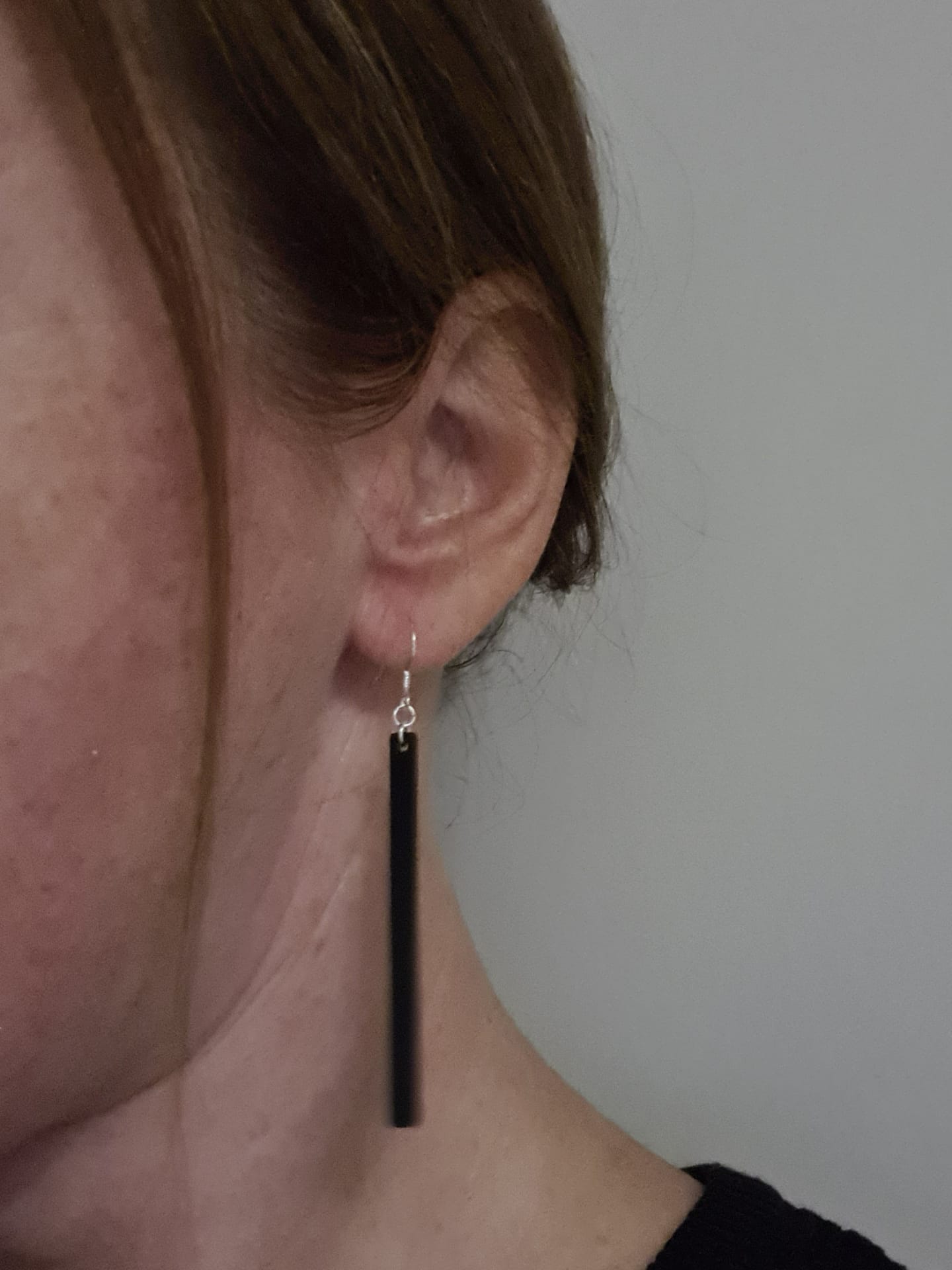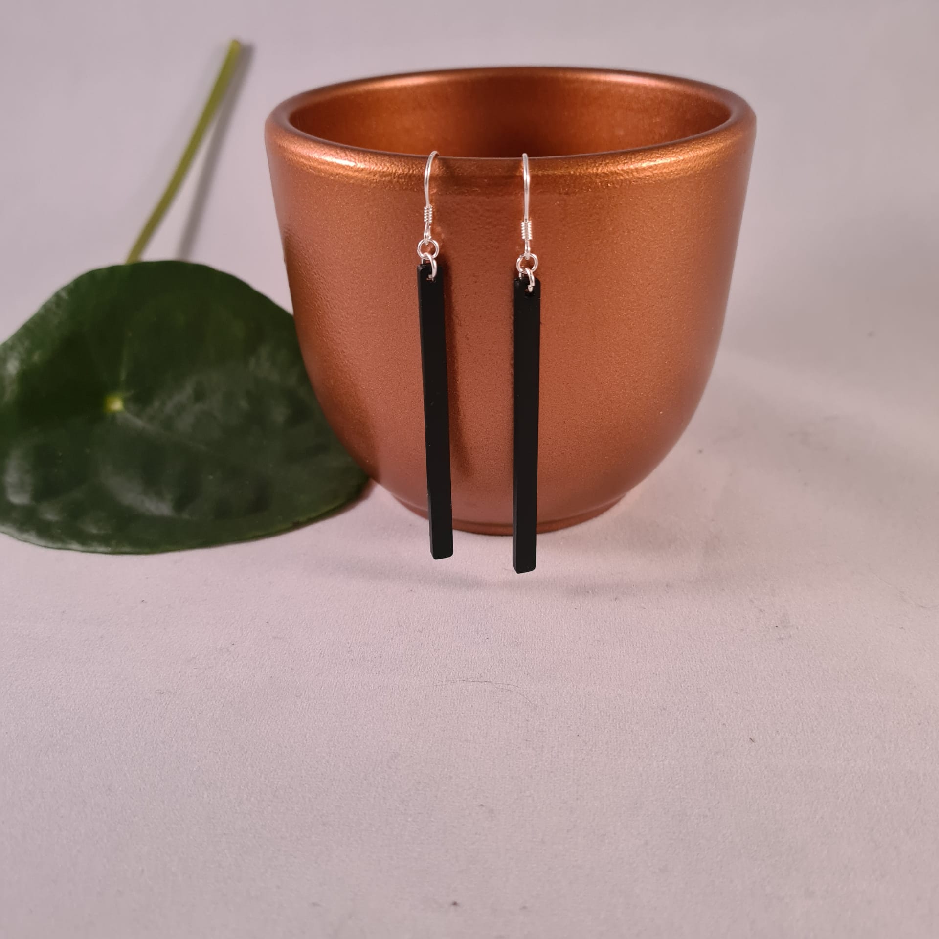 Deze zwarte houten oorbellen in staafvorm combineren eenvoud met moderne elegantie. Het strakke silhouet en de diepe, matte kleur geven een verfijnde, tijdloze uitstraling die zowel minimalistisch als krachtig aanvoelt.