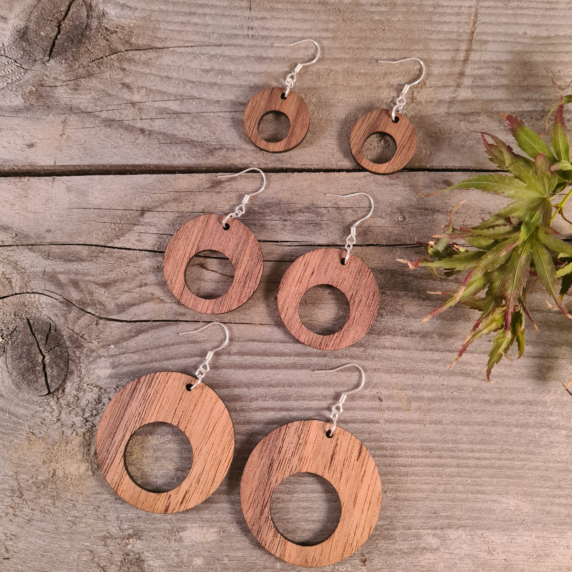 Lichte houten oorbellen in open cirkelvorm. Tijdloos, natuurlijk en elegant – een subtiele blikvanger voor elke gelegenheid.