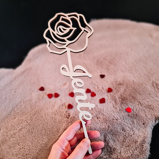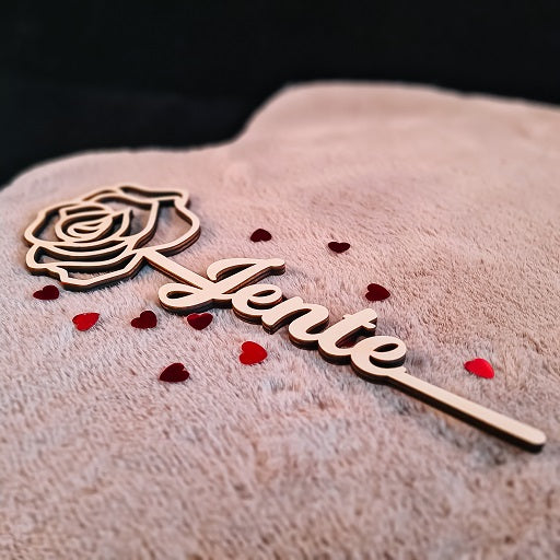 Een houten roos die nooit verwelkt — een blijvend symbool van liefde en tederheid. Gepersonaliseerd voor dat ene bijzondere iemand.