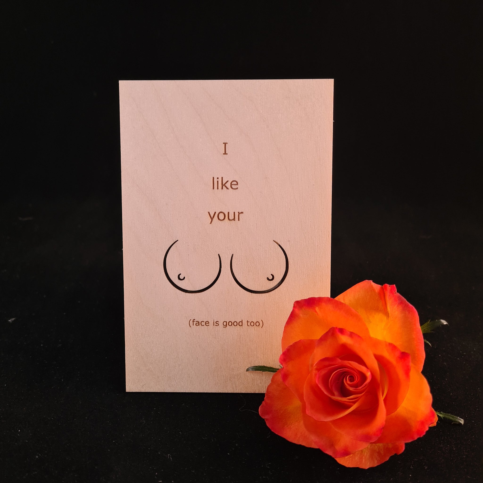 Grappige houten wenskaart om je geliefde te laten weten wat je het leukste vindt 😉