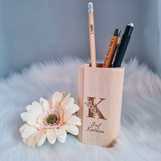 Ontdek onze gepersonaliseerde houten pennenhouder: stijlvol en uniek!