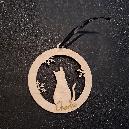 Unieke kerstversiering met zelfgekozen naam voor de katten die ook een plaatsje in de kerstboom verdienen. Per stuk verkrijgbaar.